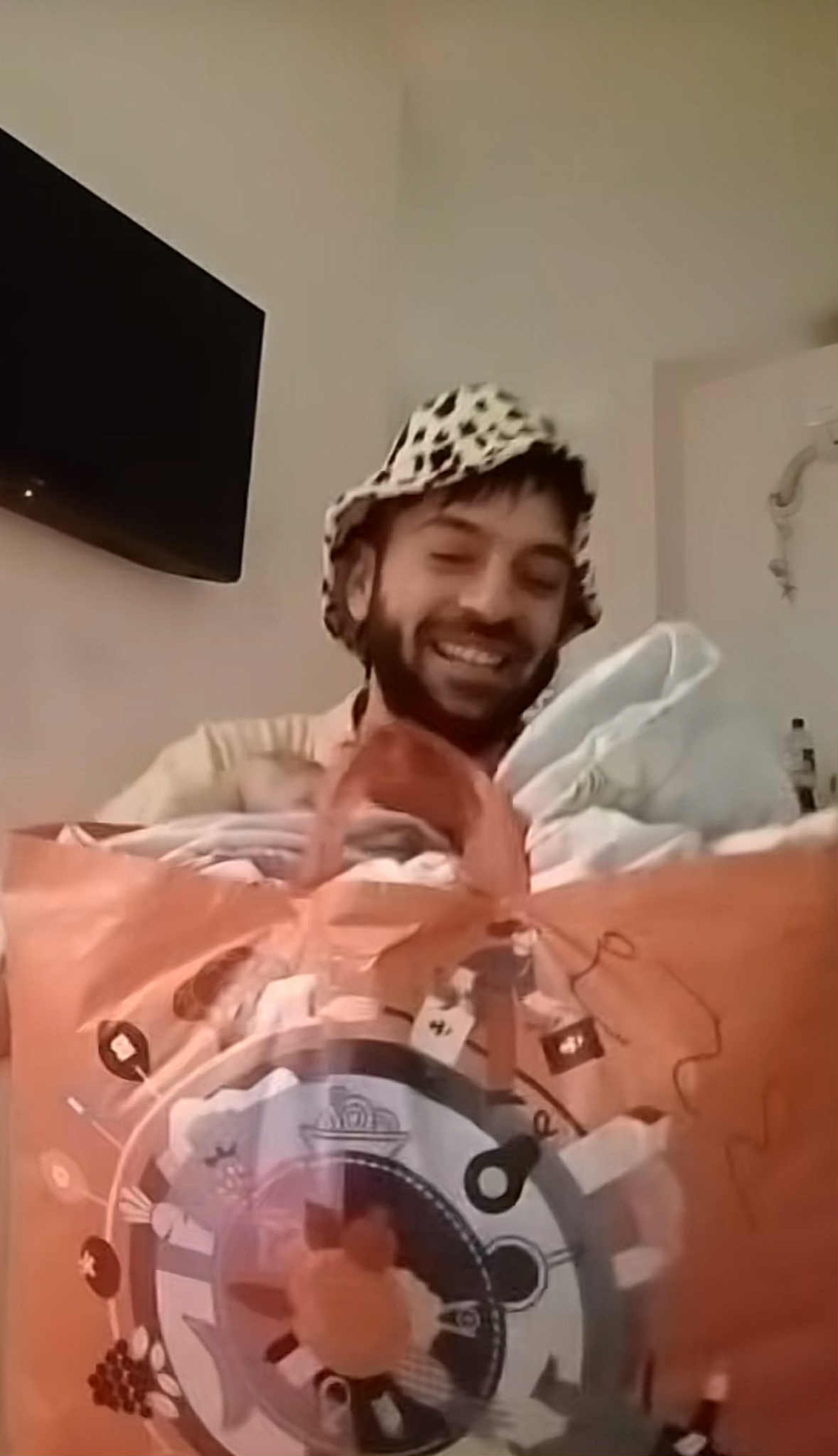 Tânărul a filmat entuziasmat cadoul pe care l-a primit de la un prieten, care știe că situația lui nu este una tocmai bună. Astfel, acesta a primit o pilotă colorată cu care să se învelească pe timpul iernii, mai ales că este destul de frig în casa lui, iar întreținerea este destul de mare.