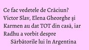 Trăim cea mai frumoasă perioadă din an, iar vedetele noastre au vrut să ne spună cum simt ele atmosfera de Sărbători.