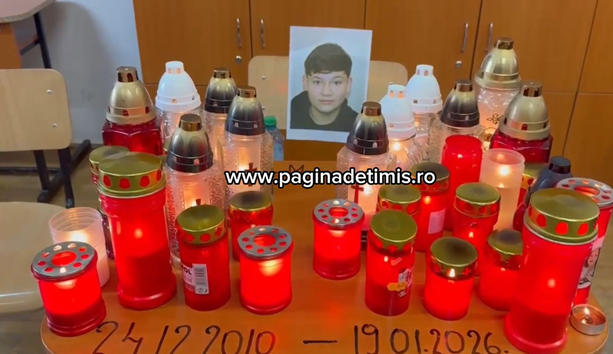 Se pare că pierderea adolescentului nu este resimțită doar de către familie, ci și de colegii săi de clasă, care i-a organizat un altar dedicat special pentru el.