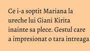 "Giani, multa experienta. Bravo! Si sa stii ca cu tine ma antrenez, apropo.", i-a soptit Mariana la ureche lui Giani Kirita.
