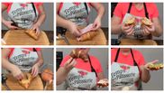 - „O să începem cu sandvișul cu șuncă. Este un sandviș foarte simplu, în care avem unt, avem șuncă și acest croissant. Cel mai simplu se taie croissantul cu foarfeca, îl tăiem aici pe mijloc, punem un pic de untuleț, punem un pic de șunculiță.(...) Cam așa o să arate sandvișul, numai că eu o să-l tai pe jumătate, pentru că fac de mai multe feluri și fiecare o să își ia câte un pic.