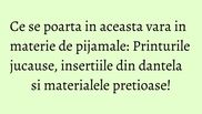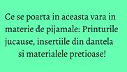 Noua colectie include piese clasice de pijama, dar si camasi de noapte, rochii vaporoase si compleuri din doua piese cu pantaloni uni sau cu imprimeuri.