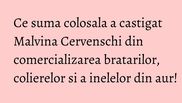 Malvina Cervenschi a devenit celebra ca prezentatoare a jurnalului de dimineata de la TVR, dar apoi a preferat sa se retraga din lumea televiziunii si sa se dedice altor proiecte. In 2012, Malvina s-a gandit sa investeasca in bijuterii de lux, create chiar de ea, iar afacerea s-a dovedit a fi un succes.
