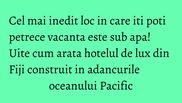 Unul din cele mai neobisnuite hoteluri din lume se afla situat la aproximativ 12 metrii adancime in oceanul Pacific, langa insulele Fiji.
