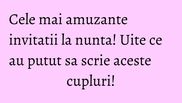Asa ca, in loc de clasicele invitatii de nunta, au ales unele amuzante care sa ii determine pe oameni sa raspunda mai repede. Una dintre cele mai mari probleme ale nuntilor sunt confirmarile de participare, atunci cand multa lume uita sa confirme si apare din senin in ziua cea mare.