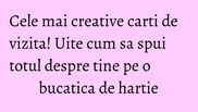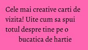 Poate face diferenta in ceea ce priveste prima impresie pe care ti-o lasa cineva. Iti prezentam cateva modele creative de carti de vizita care te vor face sa te gandesti mai bine la modul in care vrei sa-ti promovezi imaginea.