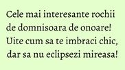 Daca mireasa nu ti-a impus o tinuta, trebuie sa stii ca iti poti alege rochii interesante care te pot face sa arati chic fara sa-ti eclipsezi prietena. Iata care sunt propunerile noastre.