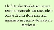 „Sunt fascinat de tot ce inseamna Romania si nu ratez nicio ocazie de a strabate tara asta minunata in cautare de mancare fabuloasa. In Dobrogea am descoperit cateva doamne cu maini absolut miraculoase, care intind niste foi de placinte cat patul, in Maramures am gatit la foc cu batranii satului care mi-au aratat secretele lor, la stana am mancat cel mai gustos bulz din viata mea. Romania e cu adevarat fabuloasa, iar mancarea noastra merita sa fie readusa pe mesele orasenilor.