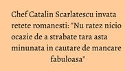 Toamna aceasta va avea un gust romanesc savuros. In perioada 5 - 8 octombrie, Chef Catalin Scarlatescu va organiza “Festivalul gustului romanesc”, un eveniment care se va desfasura la Constanta, in Piata Ovidiu, destinat tuturor celor care iubesc traditiile si mancarea romanesca.