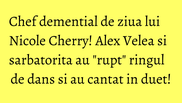 Cantaretul, intr-o forma excelenta, a fost in centrul atentiei pe ringul de dans cu cateva scheme de rapper adevarat. Dupa ce a intrat in atmosfera, "fratziwear-ul" a cantat cateva piese cu Nicole. Printre hiturile interpretate de cei doi artisti s-a numarat si "Fotoliul din odaie", melodie pe care Velea si-a dorit in mod deosebit sa o cante.