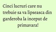 Vremea rece a trecut, iar acum ne pregatim pentru zilele frumoase de primavara! E musai sa ne schimbam garderoba si sa ne axam pe hainele lejere pe care sa le purtam atat pe strada, cat si la un eveniment de seara. Important este sa avem stil!