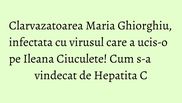 Clarvazatoarea Maria Ghiorghiu, infectata cu virusul care a ucis-o pe Ileana Ciuculete! Nu exista vaccin pentru Hepatita C