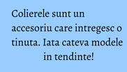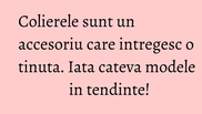 Daca vrei sa-ti scoti tinuta din monotonie, nu ezita sa o accesorizezi. Noi iti dam cateva idei de coliere potrivite pentru acest sezon.