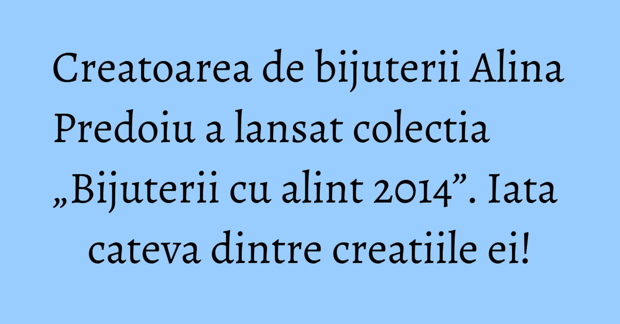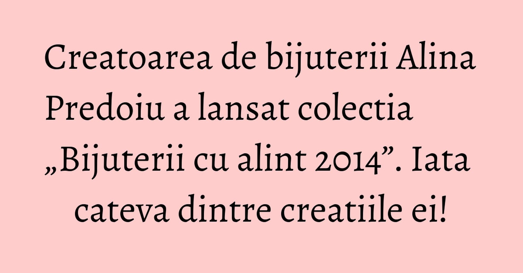 Alina Predoiu si-a lansat recent noua colectie de bijuterii, sub numele „Bijuterii cu alint 2014”, realizata in colaborare cu criticul de moda Alin Galatescu.