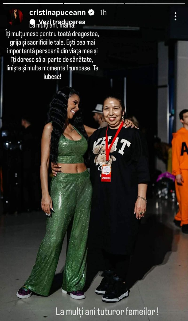 Recent, dansatoarea a publicat o imagine înduioșătoare alături de mama ei, cu ocazia Zilei Femeii. De asemenea, Cristina Pucean i-a transmis un mesaj emoționant mamei sale, prin care i-a mulțumit pentru tot sprijinul oferit de-a lungul anilor.