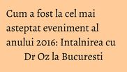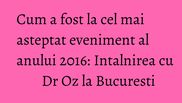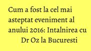 Oz, care a intampinat publicului cu un calduros „ Buna dimineata !”, spus in limba romana, recunoscand ca e singura expresie pe care o cunoaste in limba noastra, alaturi de cuvintele „sarmale” si „tuica”, pe care le degustase cu o seara inaintea evenimentului, la un local din Capitala, si de care s-a declarat cucerit.Au urmat apoi 7 ore, in care Dr Oz a vorbit, inserand si umor in prezentarile sale, despre diferite teme legate de sanatatea si frumusetea noastra si a oferit celor prezenti in sala sfaturi utile referitoare la cum sa avem grija de noi