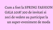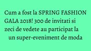 Cei peste 300 de invitaţi prezenţi dintre care vedete, jurnalişti, bloggeri de modă şi iubitori de frumos au putut admira cele mai recente colecţii ale celor 9 branduri consacrate pe plan naţional, dar şi internaţional. Designerii şi brandurile prezente pe podiumul Spring Fashion Gala au fost: Agnes Toma I Diana Caramaci I L'Atelier Couture by Loredana Ciangău I Montiago by Liliana Fenechiu I Nicoleta Negură I Rita Mureşan I Seila Gurdal I SHAKARA by Alina Enache I Tezyo by Otter Distribution