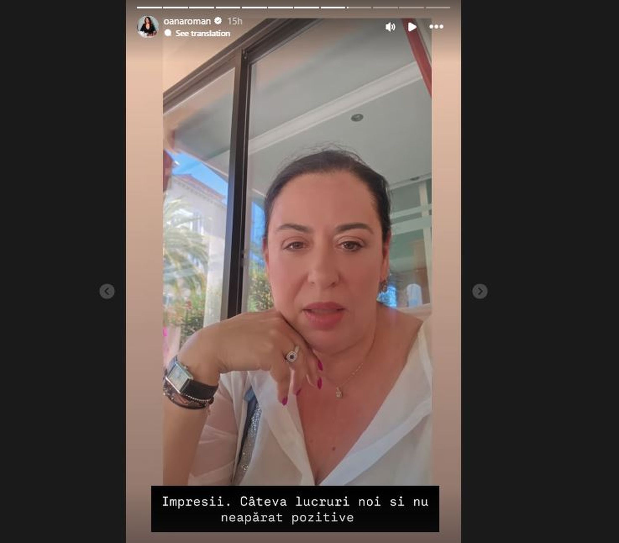 Oana Roman nu a fost deloc mulțumită, de această dată, de numărul mare de persoane care era acolo, dar nici de temperaturile ridicate, care ajungeau până la 40 de grade.“Haideți că a fost o vacanță atât de plină încât efectiv nu am avut timp să stau așa să vorbesc cu voi, îmi cer scuze, dar am postat multe lucruri frumoase pe care le-am făcut.