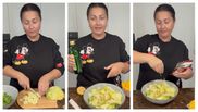 „ Pentru salată, tăiem o salată iceberg, cu câteva frunze de spanac,(...) am pus aici și câțiva sâmburi de floarea soarelui decorticați, niște semințe și aici o să mai pun așa, o să mai storc o lămâie și să mai pun o lingură de ulei de struguri(...) o să încerc să pun foarte, foarte puțină sare aici, iar pe pește o să încerc să nu pun sare deloc, ci doar o să fac un amestec de lămâie cu usturoi și o să torn așa peste acest pește, ca totul să fie delicios și să mâncăm mai puțină