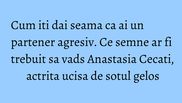 Unul dintre membrii familiei tinerei a gasit puterea sa vorbeasca despre ce s-a intamplat si el a marturisit ca sotul criminal n-ar fi fost la primele acte de agresiune fata de Anastasia. "Alexei Mitachi a fost agresiv cu ea si in trecut. Ea era acasa cu fetita ei si acest boschetar a venit sa isi vada copilul. Apoi s-au luat la cearta, el a luat cutitul si a facut ceea ce a facut. Nici nu pot sa vorbesc despre asa ceva. Dupa ce a omorat-o, a dat un mesaj si s-a aruncat pe geam de la etajul 7", a povestit, sub protectia anonimatului, unul dintre membrii familiei actritei.