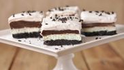 Biscuitii se farama cu atentie si se pune untul topit peste ei, amestecand cu atentie, pentru a obtine o compozitie fina. Totul se pune intr-o tava si se intinde uniform, pe toata suprafata. Se baga in frigider pentru zece minute, timp in care se pregateste crema.