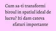 Spatiul in care lucrezi ar trebui sa ti se potriveasca la fel ca o camasa. Daca nu este asa cum iti doresti, cu siguranta nu vei munci cu placere