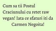Alimentatia raw vegan reprezinta una din cele mai bune alternative pentru cei care tin cu strictete Postului Craciunului si care vor sa consume preparate sanatoase, pline de fibre, vitamine si minerale sau care, de ce nu, s-au saturat de mancarurile clasice ale acestei perioade. Fashion bloggerul Carmen Negoita, specialist in alimentatie raw gourmet, recomanda cateva retete usor de preparat acasa de orice.