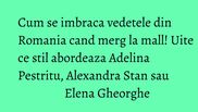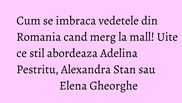 Unele dintre starurile din Romania aleg tinute elegante, stilate, atunci cand ies din casa, in timp ce altele incearca sa ramana sub "acoperire". Iata cum au aparut cateva dintre vedete.