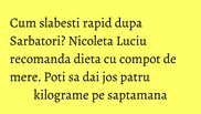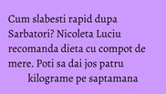Fosta Miss Romania a slabit peste 30 de kilograme dupa a doua sarcina, cea cu tripletii. Interesant este ca vedeta a dat jos surplusul de greutate natural, intr-un timp record, performanta care le-a facut pe doamne sa paleasca de invidie si sa se intrebe "cum, Doamne, o fi reusit?". Ei bine, Nicoleta le-a satisfacut curiozitatea si a impartasit secretul. Vedeta a tinut o dieta bazata pe compot de mere si supa de pui.