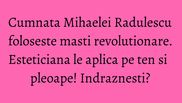 Zilele trecute, una dintre cele mai apropiate prietene ale Raduleascai a calcat pragul centrului sau estetic si a testat pe pielea sa o masca care are in compozitie plante terestre si acvatice. “Masca asta din poza hidrateaza, calmeaza si, mai ales!, produce asupra tesuturilor un efect asemanator celui pe care-l are botoxul. Exact, de netezire a ridurilor, de intindere a pielii, de lifting”, a povestit norocoasa care a testat masca cu pricina. Curios este faptul ca acesta i-a fost aplicata de estetician si pe pleaopele ochilor, un lucru neobisnuit si neintalnit pana acum in cosmetica.