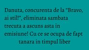 Niciodata in timpul show-ului ea nu a amintit cu ce se ocupa in timpul liber. Abia dupa ce a fost eliminata din competitie s-a aflat adevarul.