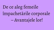 Analizând toate aceste beneficii, fără îndoială pentru femei cel mai important este să slăbească. Acest lucru se poate obţine prin împachetări corporale, dar şi prin nutriţie adecvată şi un stil de viaţă activ. Împachetările corporale au fost create pentru a acţiona exact pe zonele cu probleme (cu acumulări de ţesut adipos, cu celulită), ele având rolul de a accelera procesul de slăbire şi de a îmbunătăţi aspectul pielii.