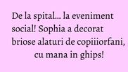 Am uitat ca am mana rupta si m-am simtit minunat inmijlocul lor. Am decorat impreuna briose si am dat frau liber imaginatiei sicreativitatii. În cadrul acestei organizatii sunt ajutati copiii orfani si copiiiabandonati. Sunt bine educati, au mult bun simt, traiesc in conditii foarte bune sisunt norocosi ca au alaturi de ei un personal dedicat ”, declara Sophia.