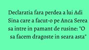 Adi Sina a facut o declaratie care a luat-o prin surprindere pana si pe sotia lui. Anca Serea nici nu a stiut cum sa reactioneze atunci cand partenerul ei de viata careia i-a daruit pana acum cinci copii a dezvaluit ce planuri au pentru mai tarziu.