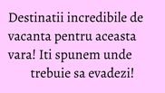 Vei descoperi locuri si oameni noi si vei gasi pacea de care ai nevoie.Iti prezentam cele mai frumoase destinatii de vacanta pentru aceasta vara, avand speranta ca te vom inspira si motiva pentru a pleca imediat.