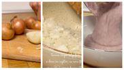 Tocăm ceapa, solzișori și o dăm la cuptor cu sare și cu ulei, aproximativ 30 de minute, până devine sticloasă. Alegem fasolea boabe, eu am ales la cutie. Mare atenție! Să conțină doar fasole, apă și sare.