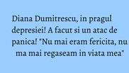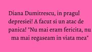 "Nu stiu care a fost problema, dar nu mai eram fericita. Nu ma mai regaseam in viata mea, nu mai aveam zambet pe buze, nu mai eram eu. Am zis ca e momentul sa fac ceva, sa imi fac viata mai frumoasa, sa imi caut fericirea. A fost momentul divortului. A urmat partea de... doliu", a spus Diana Dumitrescu la Teo Show.