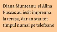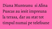 Imbracate lejer, Diana intr-o bluza alba si jeansi, iar Alina intr-o tinuta neagra, cele doua stateau la o cola si o apa plata.