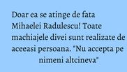 altfel, intre cele doua exista o incredere absoluta. "Astazi nu accepta pe nimeni altcineva, eu am grija de imaginea Mihaelei Radulescu”, a spus Anca Radulescu.
