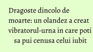 „Vedeta‟ cutiei, fabricata sub forma unui amplificator muzical, este vibratorul care poate fi folosit ca o urna pentru cenusa persoanei iubite. In cutia menita sa emita melodiile preferate ale decedatului se mai afla, pe langa bizara jucarie sexuala, si un difuzor de parfum incarcat cu arome care amintesc de iubitul pierdut in ghearele mortii.