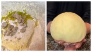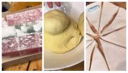 Eu o întind cu sticla. La urmă tăiați rotundul în triunghiuri și începeți să rulați cornulețele. Punem bucățica de rahat pe cocă și începem să o rulăm frumos. După ce ați terminat de modelat cornulețele, le mai lăsați un sfert de oră să se mai odihnească, să mai crească. 20 de minute să le țineți la cuptor. Le dăm prin zahăr pudră !”, a spus bunica Gherghina pe TikTok.