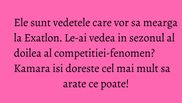 " Ma uit la Exatlon, imi place mult emisiunea si apreciez eforturile si sacrificiile pe care le fac concurentii de la ambele echipe. Si eu am spirit competitiv si, daca as avea certitudinea ca fac fata, ca rezist, mi-ar placea sa concurez la Exatlon.