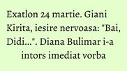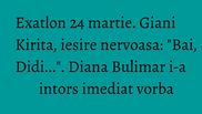 Giani Kirita si-a iesit din minti in momentul in care a vazut ca si concurentii pe care se baza au inceput sa piarda, fostul fotbalist a certat-o pe Diana Bulimar la finalul probei pe care a pierdut-o.