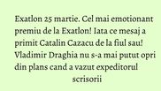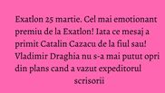 Premiul pus la bataie in emisiunea Exatlon 25 martie a fost unul extrem de emotionant. Faimosii au castigat proba cu 10-8 si s-au bucurat de scrisorile din partea familiei.