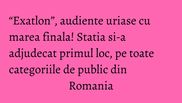 in fata micilor ecrane, pe intreaga durata de difuzare a show-ului, milioane de fani. In Minutul de maxima audienta, atins la 23:14, cand prezentatorul emisiunii Cosmin Cernat se pregatea sa dezvaluie numele castigatorului “Exatlon”, ales in urma voturilor telespectatorilor, peste doua milioane (2.318.000) de fani asteptau cu sufletul la gura deznodamantul show-ului.