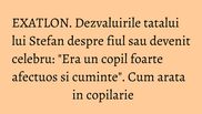 Imi aduc aminte ca nu puteam sa il lasam cu altcineva daca aveam o problema, pentru ca nu statea cu absolut nimeni. Crescand, a inceput sa se detaseze un pic de noi. Stefan a fost chiar un copil foarte cuminte...Noi ne-am dorit o fetita si sotia mea, pana cand a nascut, a crezut ca Stefan este fata. De mic a fost foarte intelegator. Daca ne duceam in magazin sa ii cumparam o jucarie, spre deosebire de Nicolae, fratele lui cel mare, care se trantea pe jos daca nu ii luam ce isi dorea, Stefan spunea: <Lasa, mami, ca nu imi trebuie neaparat jucaria aia!>. Lacrimai cand auzeai asa ceva de la un copil de 4-5 ani. A fost un copil intelept, nu a fost niciodata lacom", isi aminteste tatal razboinicului.