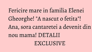 Mare sarbatoare in familia cantaretei Elena Gheorghe in aceste momente! Sora ei, Ana, a adus pe lume, in urma cu putin timp, o frumusete de fetita, care a si primit la nastere nota 10 din partea medicilor!