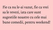 De-a lungul timpului cetatea filmului ne-a oferit o multime de filme de comedie la care am ras cu lacrimi. Noi am facut o selectie pentru tine asa ca nu iti ramane decat sa te inarmezi cu popcorn si sa te inscrii intr-un maraton de rasete.