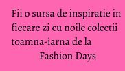 Fashion Days, cea mai mare destinatie de fashion din Romania, a lansat noile colectii de toamna-iarna, apartinand unor branduri internationale de top precum Esprit, Calvin Klein, United Colors of Benetton, Desigual, Stefanel, UGG, Liu Jo, Superga, Dolce& Gabanna, Triumph, Dsquared, Levi's, Vagadond si multe altele. Fashion Days ofera clientilor posibilitatea de a alege din cele peste 500,000 de produse, de la peste 1000 de branduri de fashion.