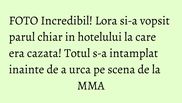 Lora dorea ca pe scena sa aiba o aparitie impecabila, iar cum probabil nu a avut timp sa se vopseasca inainte de a pleca spre Sibiu, a gasit o alta varianta. Asa s-a programat la un salon din cadrul hotelului.